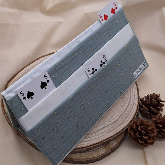 Support de cartes _ Vert de gris Ă pois